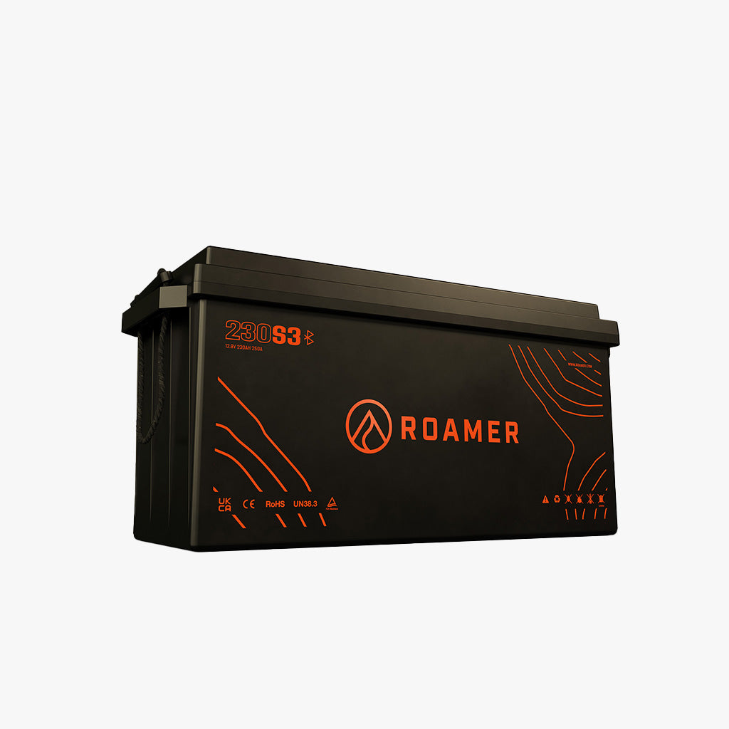 The Roamer 230SMART4 is the ultimate ‘drop in’ LiFePO4 leisure battery – complete with an internal Battery Management System (BMS) with Active Balancing and Bluetooth monitoring via the Roamer BMS app. The 200A continuous discharge rate and the ability to combine up to four batteries in series or parallel gives this battery total flexibility to increase capacity and power.