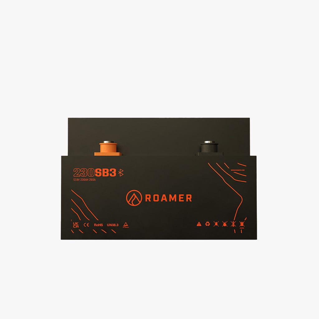 The bar has been raised yet again. Say hello to our 3rd generation Roamer 230SEATBASE4. Grade A+ matched cells provide 230Ah of usable capacity while a high power Battery Management System (BMS) with Active Balancing allows up to 3200W of continuous power – all in a custom case that fits neatly under a campervan swivel seat.