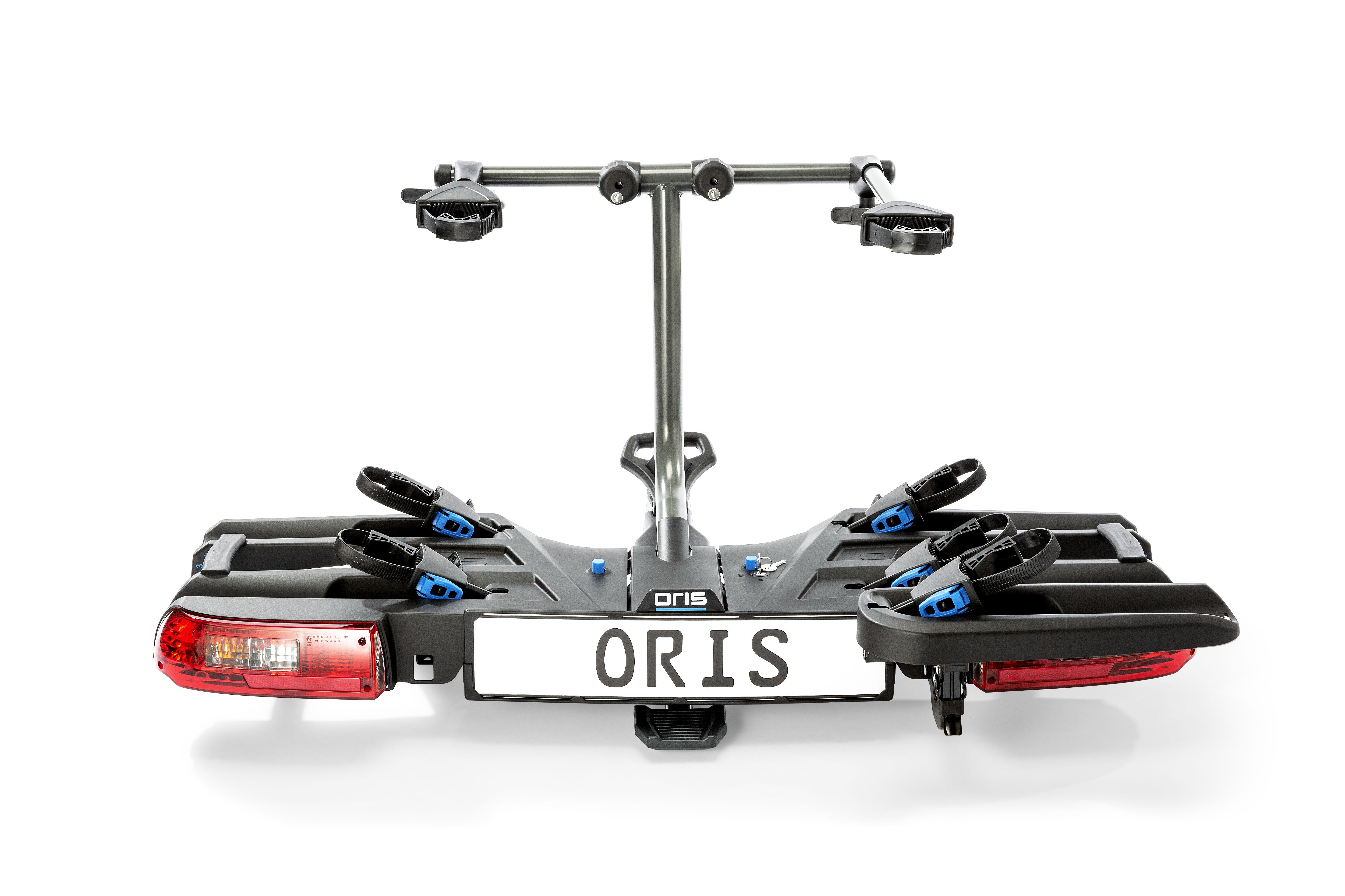 The premium ORIS TRACC bicycle carrier can be mounted on the vehicle towbar in just a few steps using a tool-free quick-lock system. The bicycle carrier has a high-quality finish and is stable thanks to the high-strength steel and aluminium construction of the load-bearing components. The halogen lighting system is modern, durable and integrated into a UV, heat and cold-resistant plastic cover. A loading ramp is available as an optional extra for easy and energy-saving loading for e-bikes. Extra-long ratchet straps are available as accessories for oversized frame and wheel geometries.