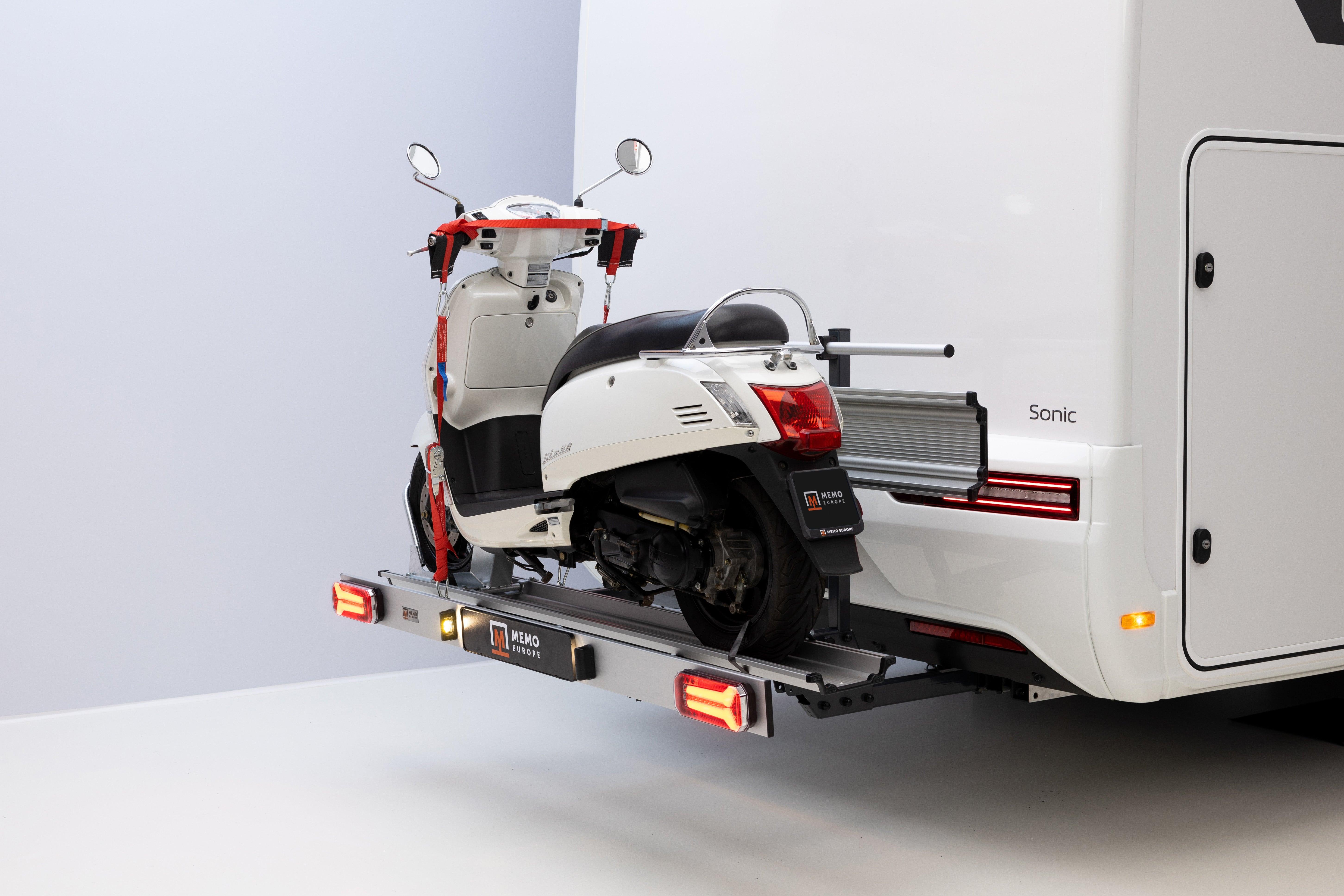 The ideal scooter carrier for motorhomes, take your scooter with you on holiday without any issues. With a load capacity of 150 kg, the Zorro carrier is made to carry one scooter. Optionally you can add an extra bike kit, that way you can take the scooter as well as one bicycle with you on holiday.